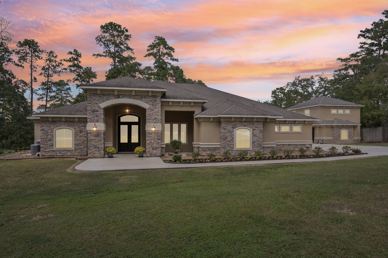 So many IMPROVEMENTS!!!!! See list in documents. ROOF 2022,HVAC 2023, NEW, QUARTZ COUNTERS, CARPET, LUXURY VINYL FLOORING, LIGHTING, BACKSPLASH , FRONT DOOR AND MORE IN 2024.Nestled on over an acre of lush landscape, this stunning two-story Trendmaker custom home epitomizes luxury living. As you enter the home through the 6 pane front door from the large porch, you are greeted with a sweeping staircase. The backyard is equally impressive with a shimmering pool and inviting hot tub. surrounded by patio space perfect for entertaining or tranquil retreats. The large primary bedroom boasts a cozy sotting area. The office space located at the front of the home provides an ideal haven for productivity. The staircase takes you to the game room which promises endless entertainment possibilities. The 3 additional bedrooms offer comfort and convenience, and with a three-car garage completing the picture, this home is a sanctuary of modern sophistication and timeless charm.